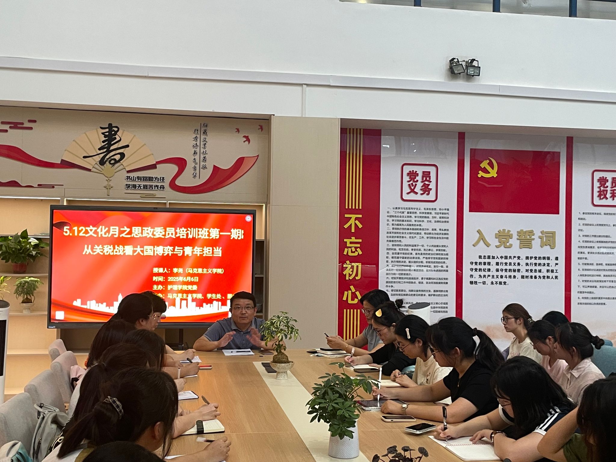 护理学院2023、2024年级全体思政委员,相关年级专职辅导员及学院兼职辅导员、马克思主义学院教师、培训班班主任李桂玲老师参加开班仪式。第一期培训由护理学院党委联合学生处、马克思主义学院、图书馆举办,马克思主义学院李尧老师主讲,主题为 “从关税贸易战到大国博弈与青年担当”。