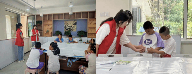 随着活动顺利推进,进入海姆立克急救法宣教环节。海姆立克急救法是应对气道异物梗阻的有效手段,操作简便易学,关键时刻可挽救生命。活动中,志愿者分工协作,一人进行演示,一人同步讲解,并针对操作要点向儿童提问和解答,加深了他们对急救知识的理解。