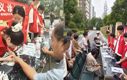 活动现场,志愿者们热情主动地为居民提供服务。在义诊区,志愿者们规范操作血压计、血糖仪,详细记录每位居民的检测数据,并针对异常指标进行一对一健康指导。针对社区老年人群普遍存在的高血压问题,志愿者们结合专业知识,用通俗易懂的语言分析致病因素,并给出“限盐控油、规律作息、科学运动”的生活指导。在健康宣教环节,志愿者们通过发放宣传手册、进行互动问答等方式,讲解慢性病管理、夏季防暑、居家安全等实用知识,特别叮嘱老年居民注意防暑降温。活动现场还设置了健康互动区,志愿者们带领老人们练习手指保健操,通过“一对一”示范、“手把手”教学,让老人们在轻松愉快的氛围中掌握健康技能。活动过程井然有序,既展现了护理学子的专业素养,又让居民们真切感受到温暖贴心的健康服务。