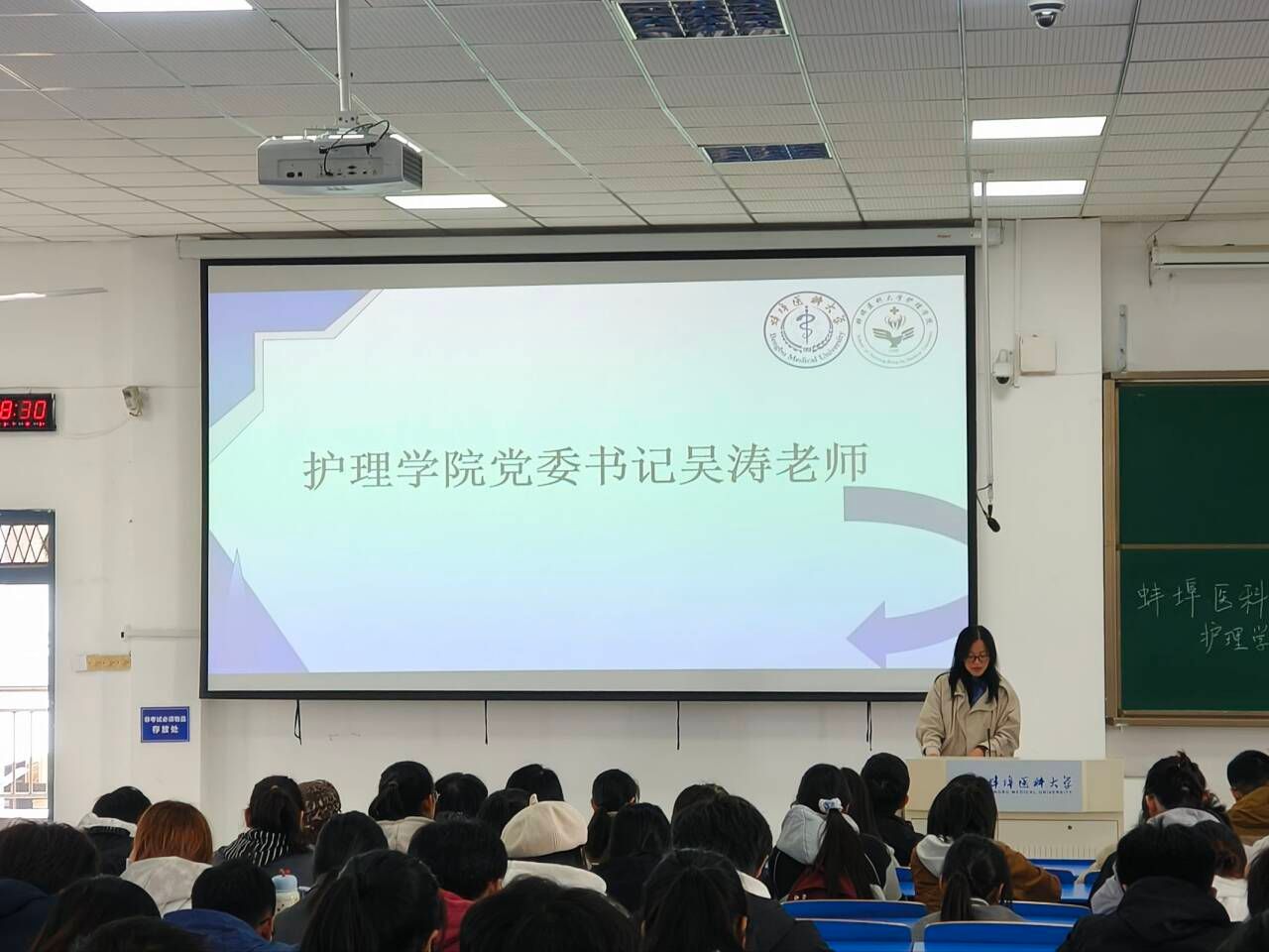 为迎接蚌埠医科大学第二届田径运动会,鼓舞运动员士气,保障志愿服务工作顺利开展,10月27日,护理学院在G3教室隆重召开动员大会。学院领导、各年级辅导员,学院学生会、青年志愿者协会代表和全体运动员出席了大会。会议由组织权益部干事蒋一帆主持。