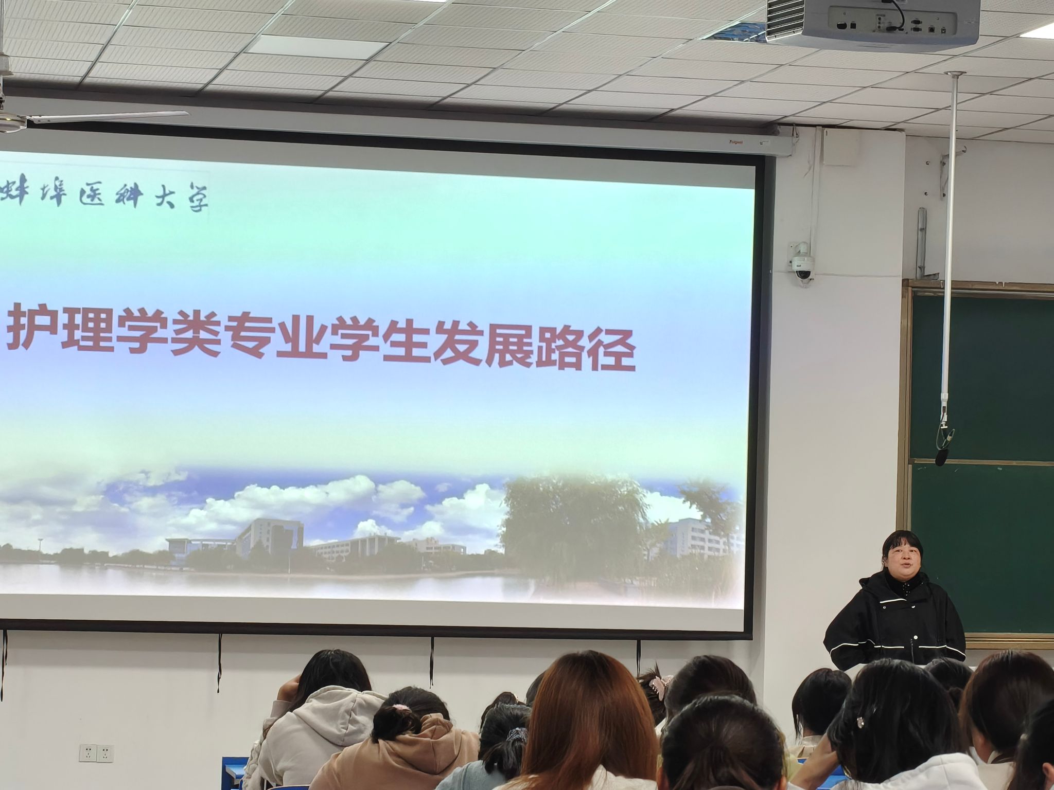 护理学院院长朱宁宁老师介绍了学院的发展历程与教育体系,涵盖本科、研究生及继续教育等多个层次,并分享了护理专业的升学与就业数据。她鼓励新生把握行业机遇,提升综合素质,积极参与科研与社会实践,以“领导者、教育者、研究者”等多元角色为目标,在护理领域实现自我价值。