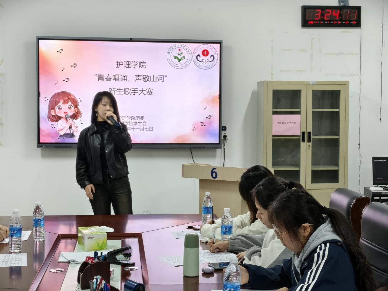 为丰富校园文化生活,营造积极向上的校园氛围,11月7日晚7点,护理学院在G座417教室成功举办“青春唱诵,声敬山河”新生歌手大赛。