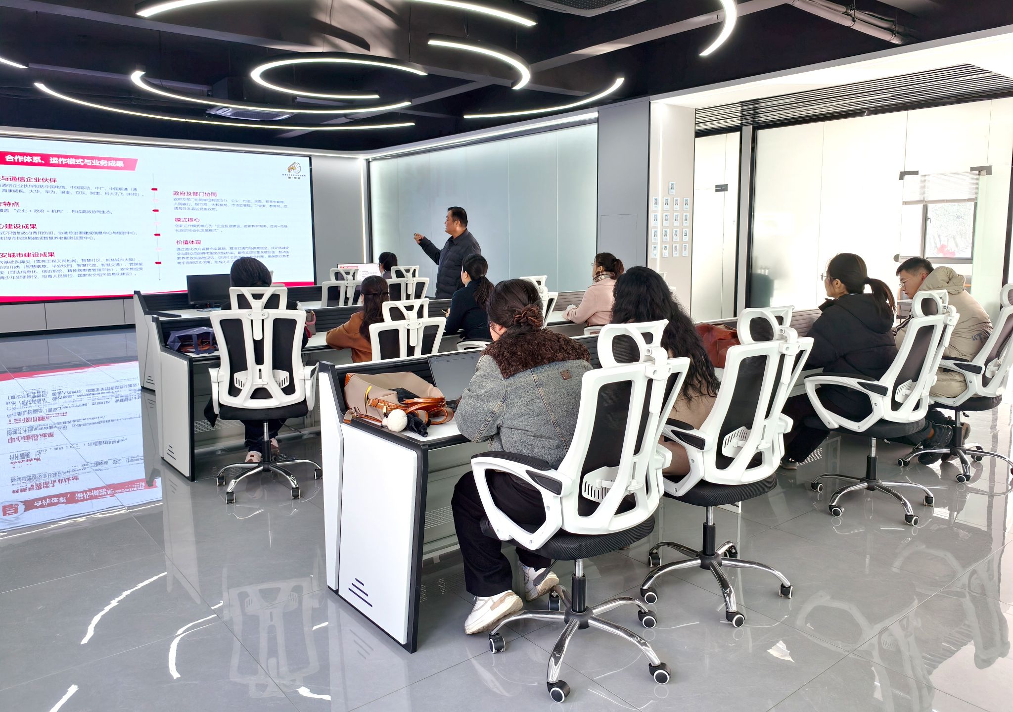 运营中心负责人展示了中心的运营场景、信息化平台建设,并详细介绍了中心几种社区养老服务模式;在随后的座谈中,校院双方与本地智慧养老服务企业围绕共建“蚌埠市互联网医养结合服务平台”达成初步共识。该平台将依托大学和三所附属医院的医疗、护理、教学及科研资源,结合企业在智慧养老领域的技术优势和平台资源,共同推出“互联网+护理服务”“在线健康咨询”“家庭医养服务包”“送药到家”等多项便民服务,有效拓展互联网医院在社区和居家场景中的应用,切实服务本地居民特别是老年群体的健康需求。
