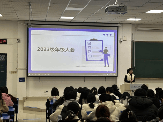 年级辅导员张叶群立足护理学类专业特色,深刻阐述了临床实习在人才培养中的关键作用,勉励同学们珍惜实践机遇,在一线岗位中锤炼技能、积淀经验,为职业生涯筑牢根基。随后,她通过详实的数据图表,对历年考研升学率、录取院校分布及就业去向进行了多维度剖析,精准解读行业发展趋势,助力学子清晰把脉就业形势,科学制定个人发展规划。此外,张叶群还就实习基地分配原则、轮转管理制度等具体事宜作了详细说明,确保全体同学对即将奔赴的实习岗位做到心中有数、准备充分。